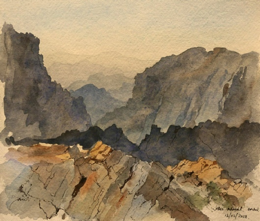 Pen and watercolour sketch on Khadi paper.